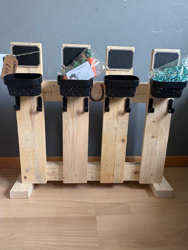 Van wortel, hooinetje, zweepje, halster, hoofdstel, borsttuig, oornetje, dekentje en diversen stallen.