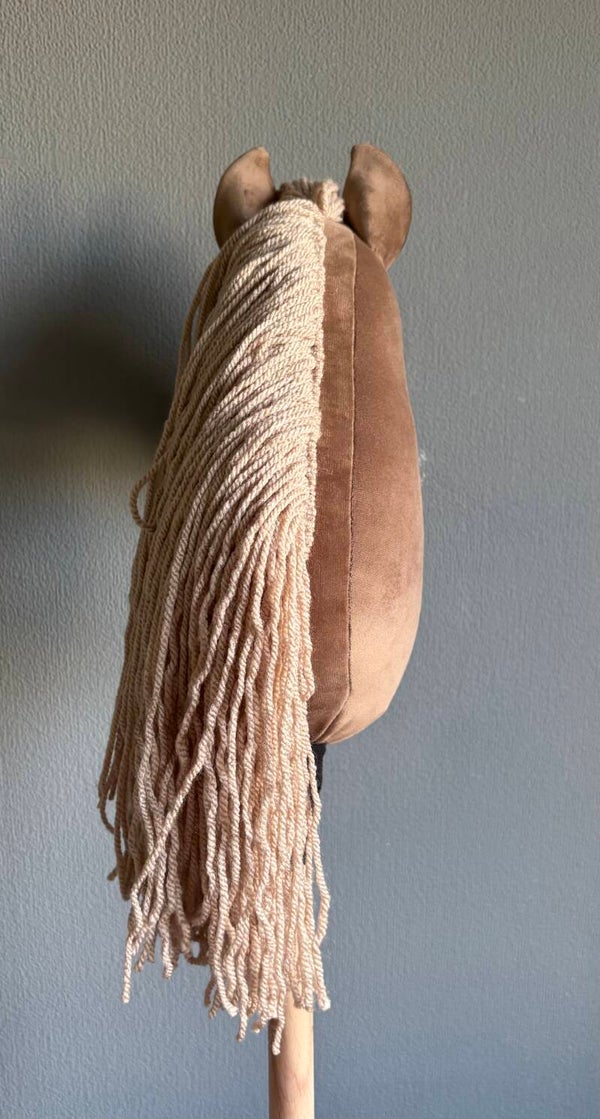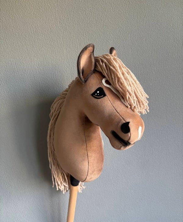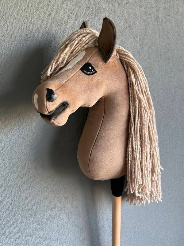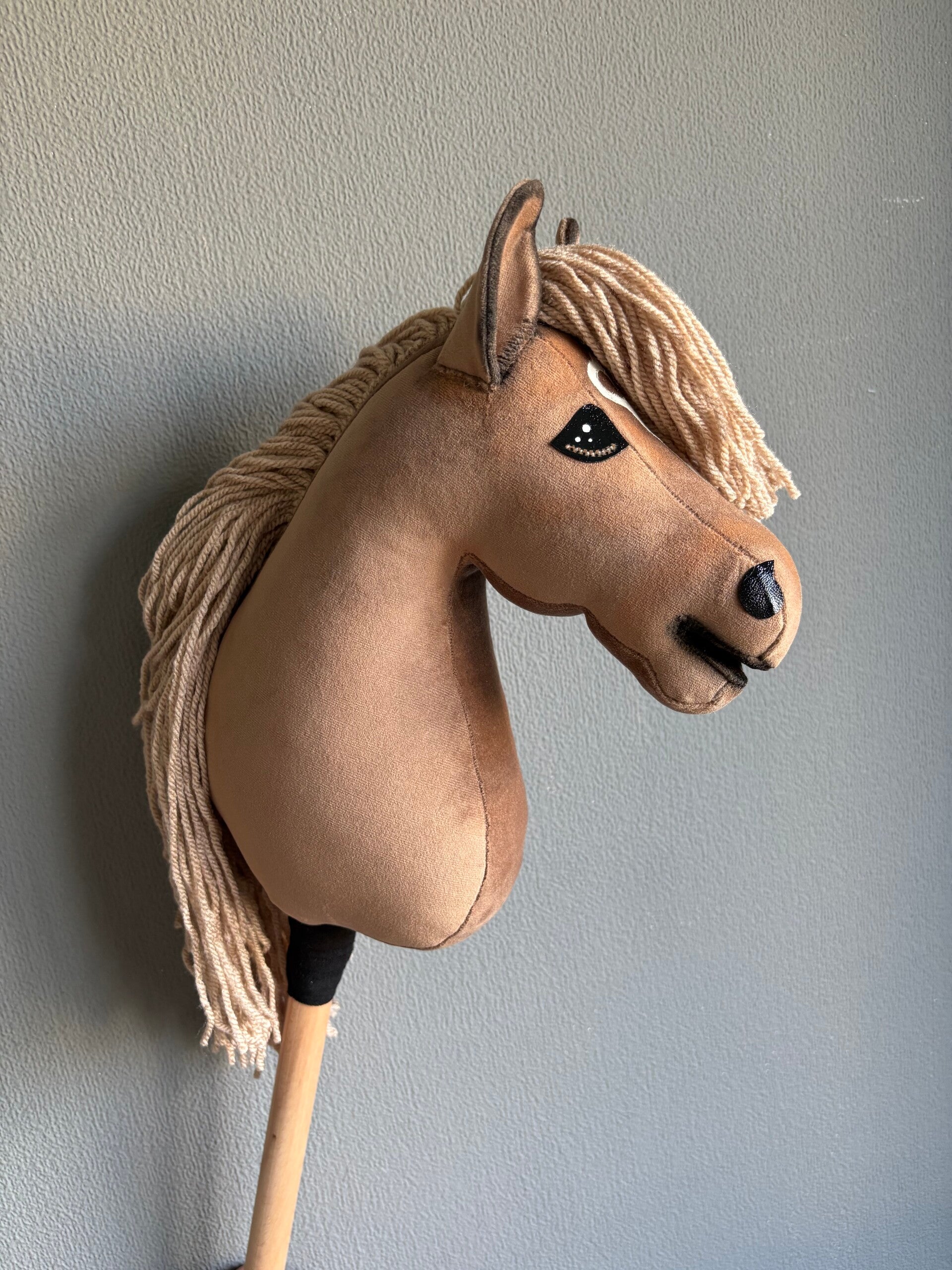 Dreamer is een licht bruine (beige) hobbyhorse in formaat S (zie laatste foto’s) Perfecte formaat om mee te springen.