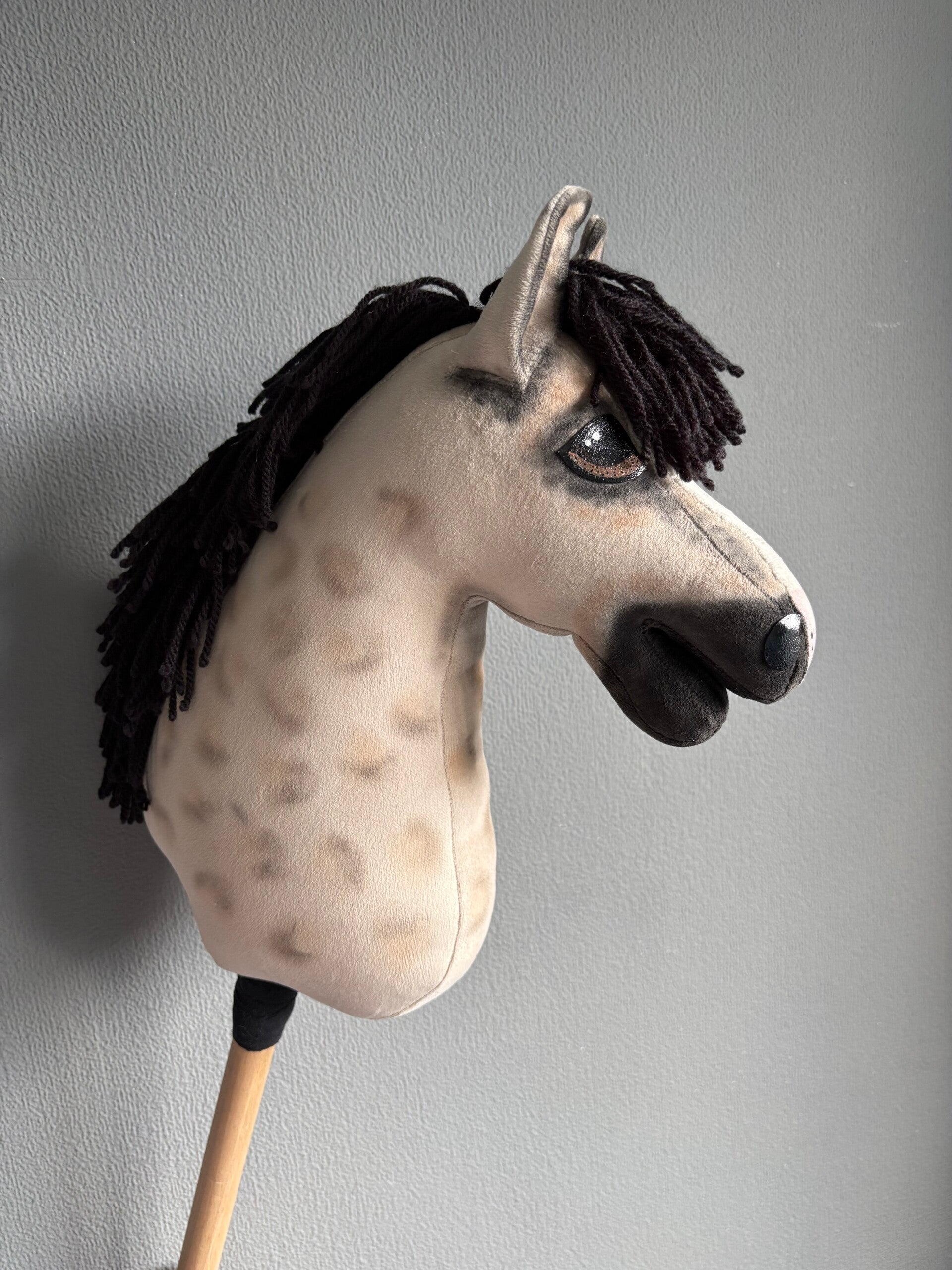 Deze hobbyhorse is handmade en zo realistisch mogelijk gemaakt.
